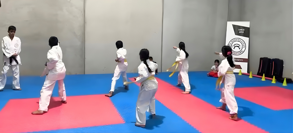 Students train in a proper karate uniform (gi) and advance through a structured belt system that encourages goal-setting and celebrates achievement at every stage.